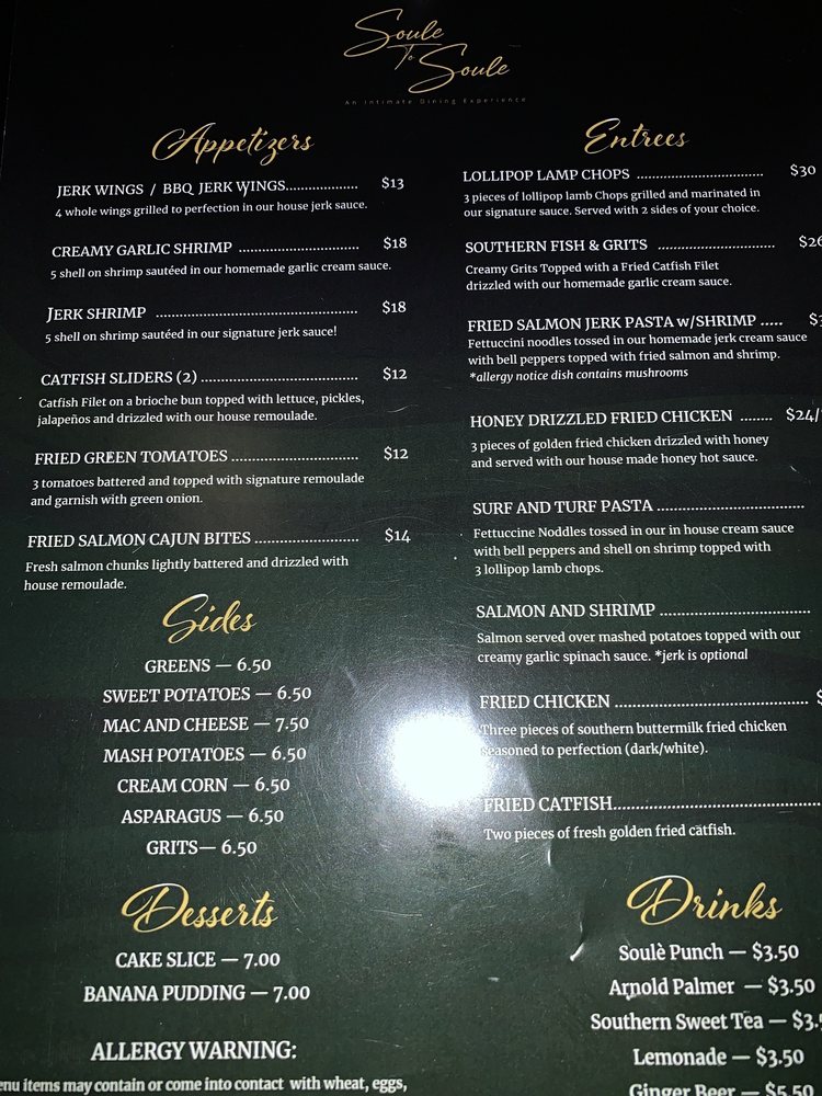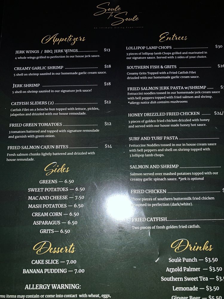 With quick service and BYOB convenience, "Soule To Soule" balances budget-friendliness with exceptional culinary delights. Every dish promises a satisfying journey into the heart of soul food, making it a must-visit destination for food lovers.
